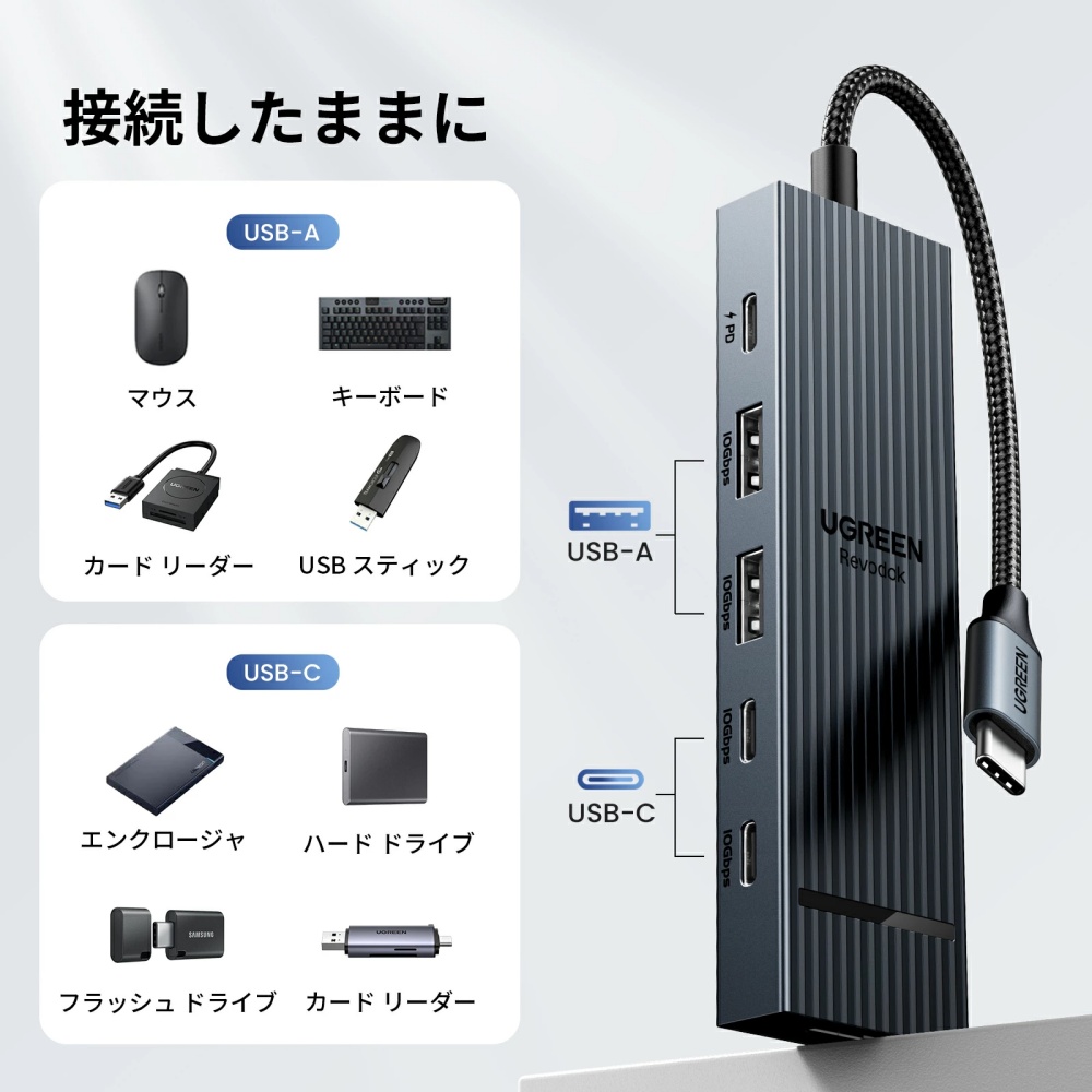本日はPC周辺機器でマストアイテムのUSBハブ UGREEN Revodok USB-C ハブ 6-in-1 100W をご紹介したいと思います。