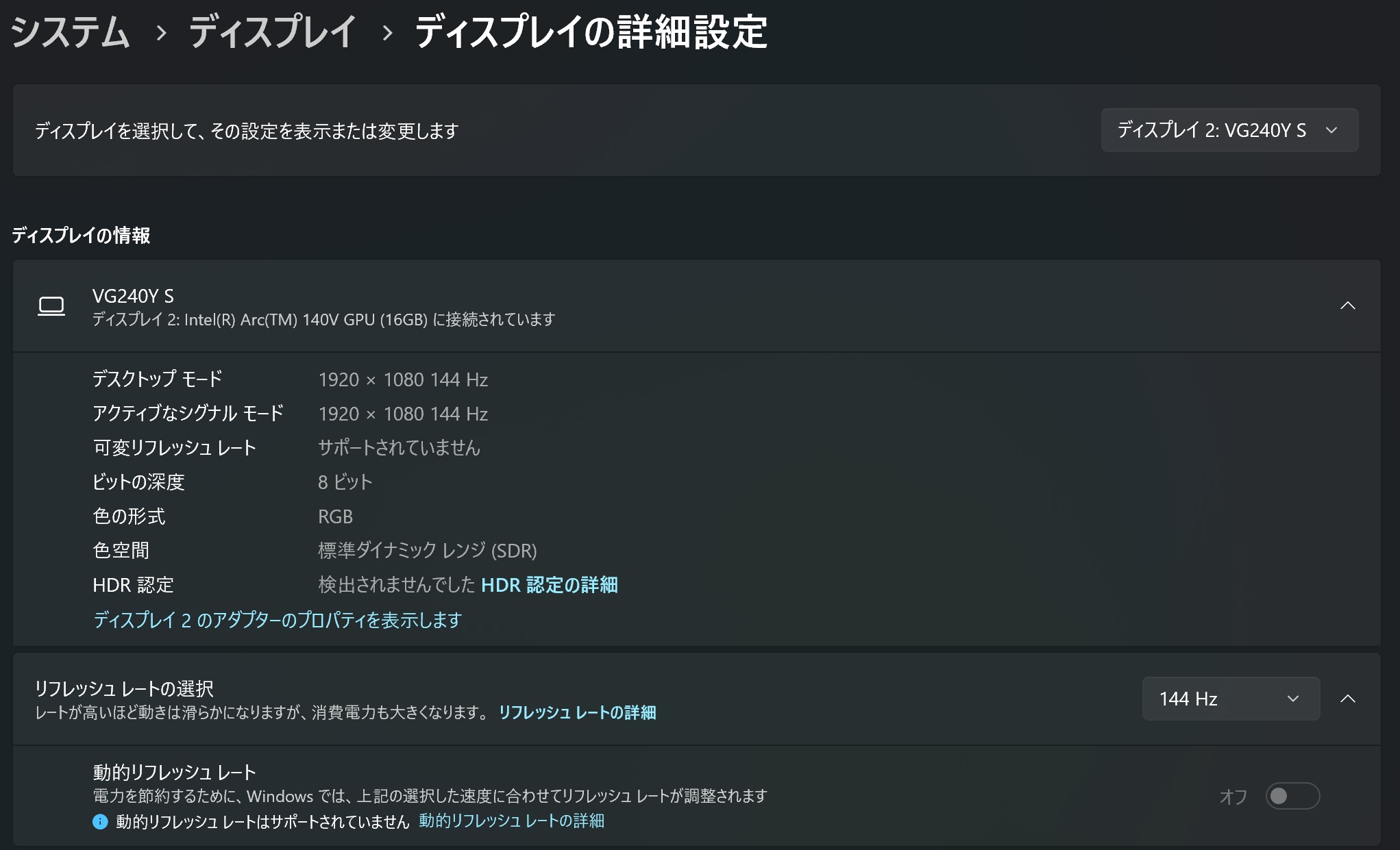 - フルHDなら144Hz:120Hzや144Hzのゲーミングモニターでの高速駆動もカバー