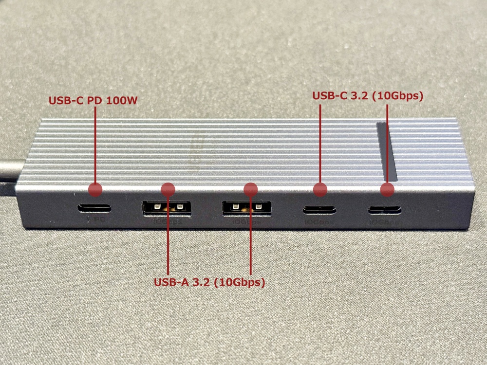この辺りは一般的なUSB-Cハブと遜色ない仕様となっております。