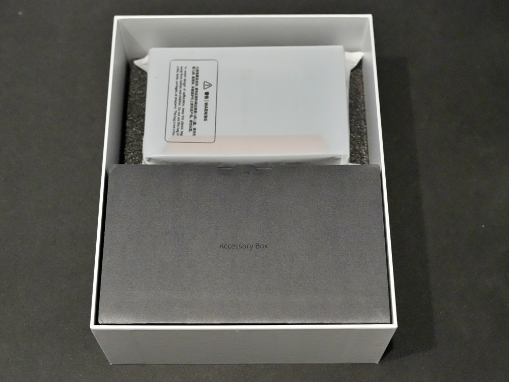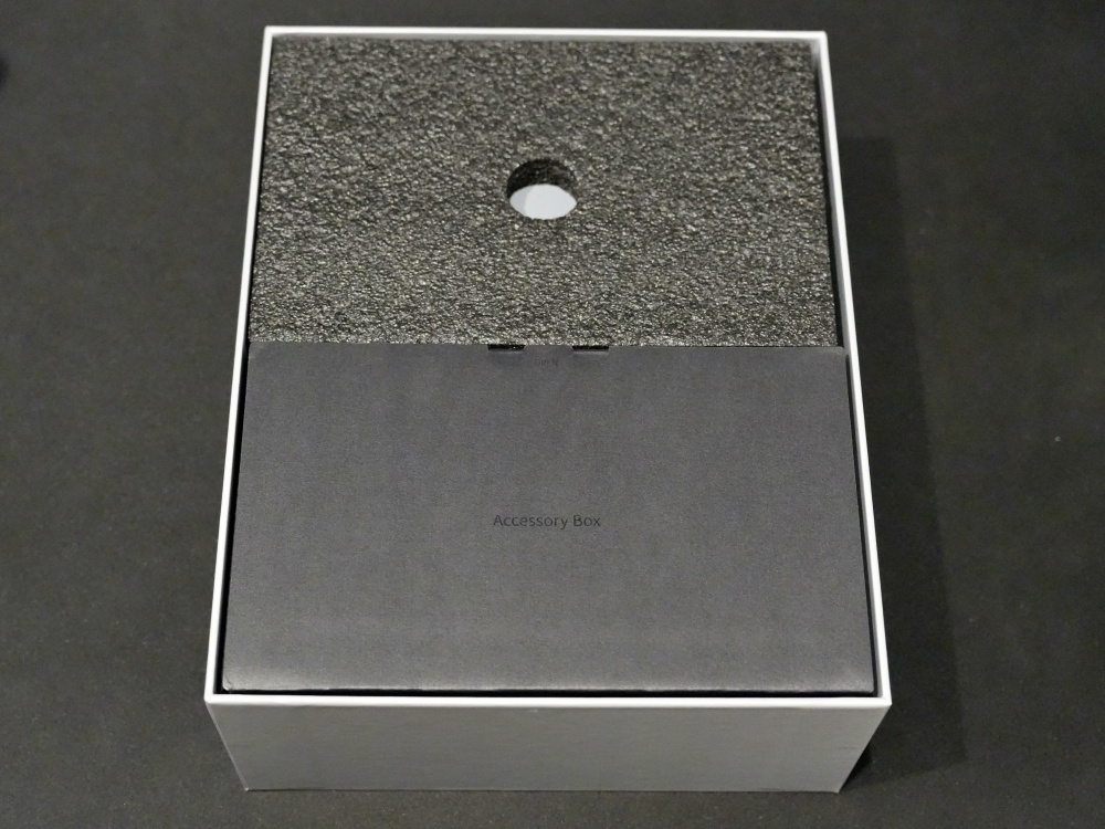 箱を開けると本体を保護する衝撃吸収材とAccessory BOXが出てきます。