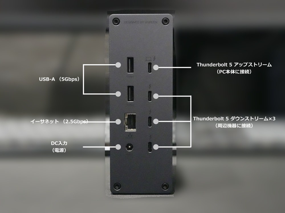 背面3基のThunderbolt 5ダウンストリーム×3ポート