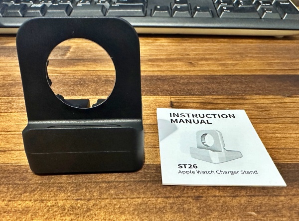 Apple Watch純正充電器をセットした状態です。黒色スタンドに白色充電器なので、少し目立ちますがApple Watchをセットすれば気になりません。