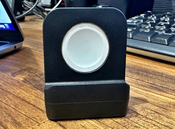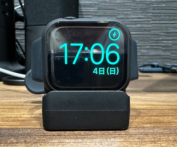 Apple Watch 8 (45mm)をセットするとこんな感じです。充電時はズレることなくセットできます!