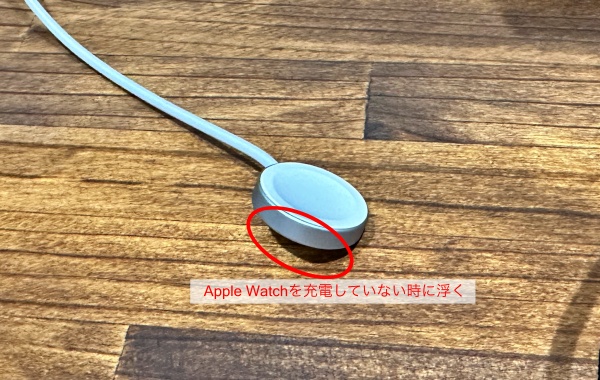 Apple Watchを充電していない時にケーブルの折り曲げクセに負けて、写真のように机の上で充電器が浮いてしまう現象が起きていました。