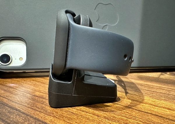 横から見ると、Apple Watch 8 がコンパクトに収まっているのが分かります!これで机の有効面積を増やしつつ、ケーブルクセのストレスも無くなる一石二鳥です!